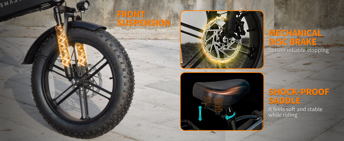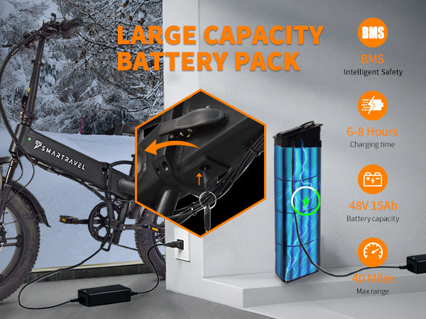 6061 Aluminum Alloy Size of Tyre: 26 * 1.95 inch Voltage: 48V Power: 350W (Automatic 2-stage variable speed motor) Battery: 14AH Samsung battery Helping with maximum mileage: 50-60 Miles Max Speed: 25MPH Brake: Shimano MT200 hydraulic Transmission: Shaft drive with torque sensor Recharge time: about 6 hours Max Load: 330 lb